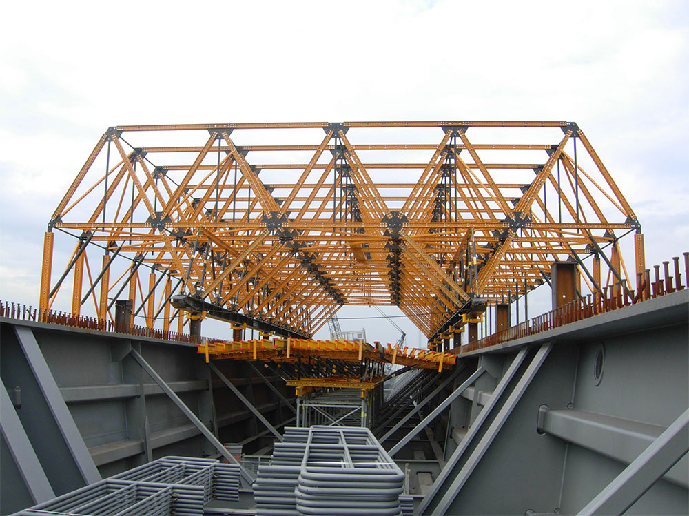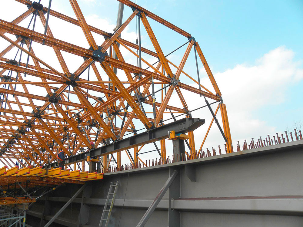 Il carro per strutture miste MK è un sistema di casseforme flessibile ed efficiente, focalizzato principalmente sulla costruzione di ponti in acciaio e ponti parzialmente gettati dove la cementificazione del carro per strutture miste è necessaria.