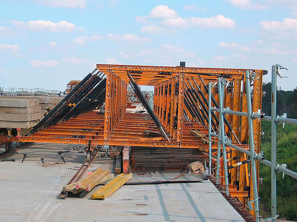 Il carro per cordolo è estremamente leggero ma altrettanto funzionale e molto flessibile per gli spostamenti. Questo sistema è utilizzato per la costruzione di parapetti di protezione per ponti oppure per il getto di cordoli a sbalzo con requisiti di carico meno importanti.