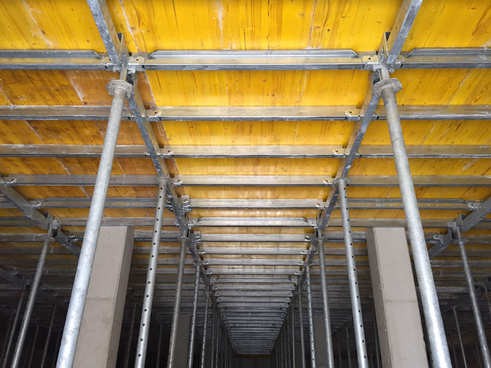 - Bassa incidenza dei puntelli: 0,4 puntelli/m2 durante il getto e 0,2 puntelli/m2 dopo il disarmo.