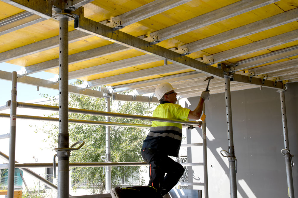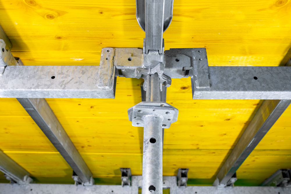 - La maggior parte della cassaforma può essere smontata e riutilizzata il terzo giorno, lasciando la testa a caduta insieme al suo puntello come unici elementi portanti del sistema.