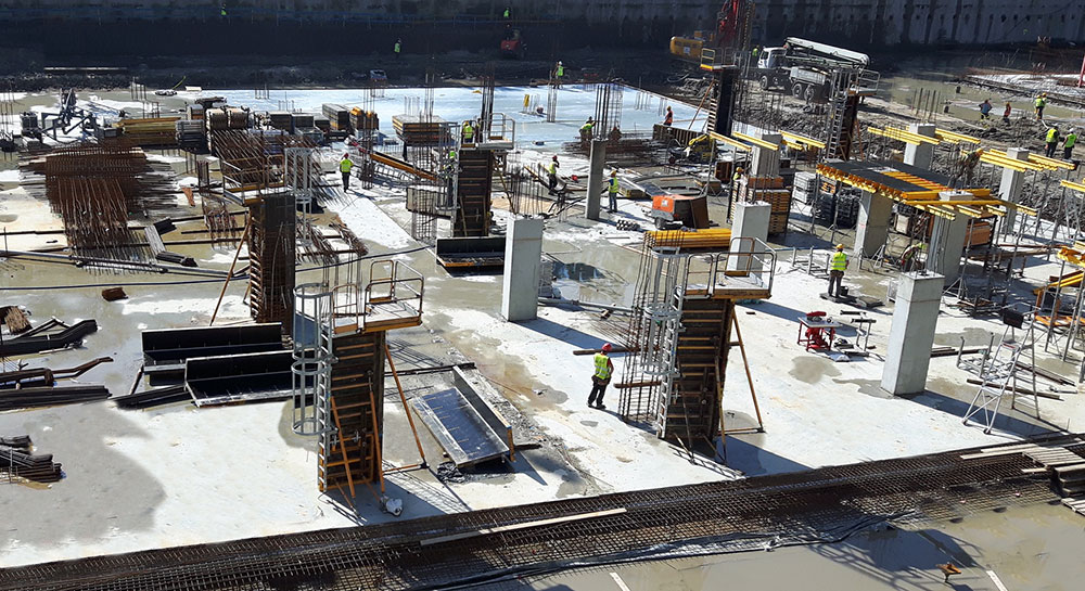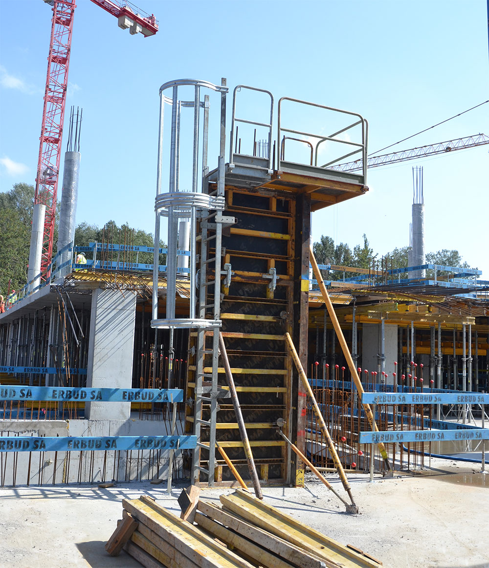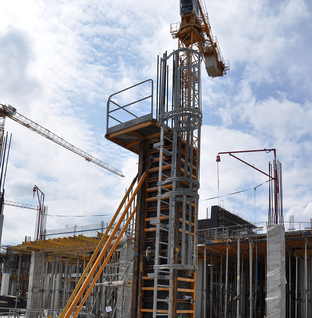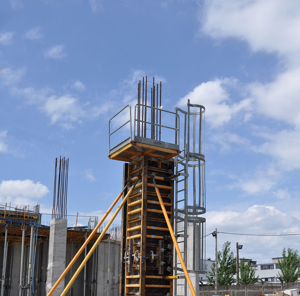 Dispositivi di sicurezza progettati per pilastri in calcestruzzo. L'assemblaggio del sistema può essere effettuato da terra, fattore che garantisce la massima sicurezza per il lavoratore, e può essere adattato a qualsiasi dimensione del pilastro. Ogni elemento di sicurezza e di imbragatura è incorporato nella pedana, rendendolo un ottimo sistema per la costruzione di pilastri sia dal punto di vista del rapporto costo-efficenza sia per quanto riguarda la sicurezza.