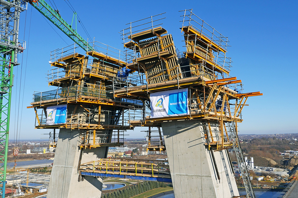 La struttura è realizzata con i componenti del sistema MK. Può adattarsi alle diverse geometrie e può essere abbinata a vari sistemi di disarmo della cassaforma (carrelli, torri ecc.). Questo sistema può inoltre essere dotato di strutture per sostenere eventuali elementi ausiliari quali, ad esempio, i bracci per il getto del calcestruzzo e gru di piccole dimensioni.