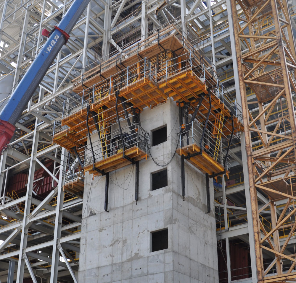 Ciò permette un grande adattamento a geometrie complesse e finiture del calcestruzzo a vista, ma soprattutto è un sistema realizzato per raggiungere tempi e ritmi di lavoro ottimali durante la risalita, i processi di getto e distacco del calcestruzzo, in totale sicurezza.