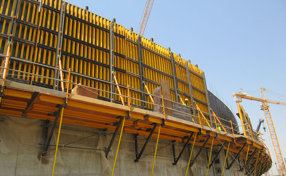 Il sistema con mensola rampante CR-250 è stato progettato per casseforme di grandi dimensioni. È impiegato per il getto di pareti doppia faccia (pile, pareti, ecc...). Le mensole sono sostenute da coni di ancoraggio, che vengono inseriti nel calcestruzzo durante le fasi precedenti di getto.