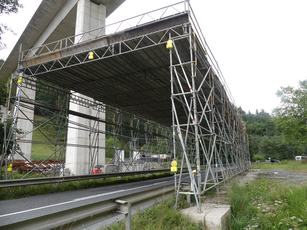 Utilizzate nella costruzione dei viadotti, proteggendo il personale mentre lavora e permettendo che il traffico fluisca in completa sicurezza sotto all’impalcato di sicurezza. La struttura protettiva è composta da torri d’impalcato, un traliccio di rinforzo e una pensilina.