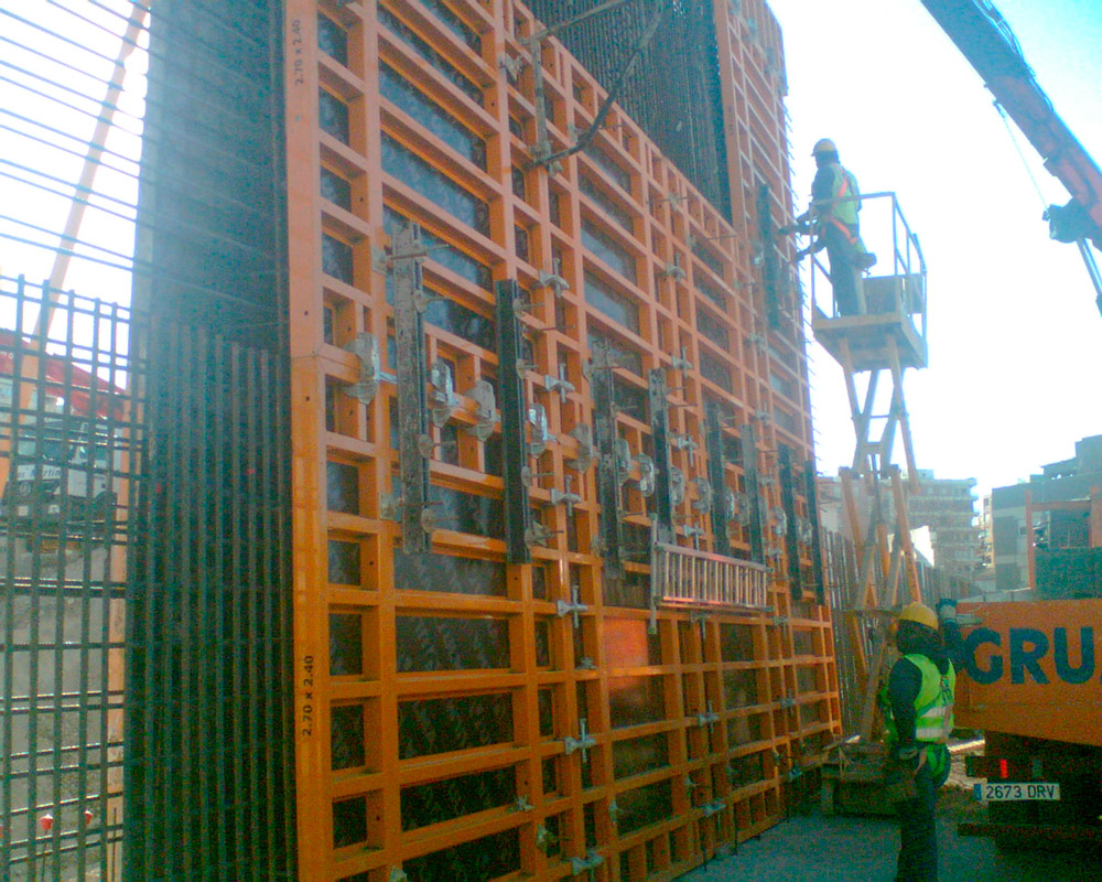 Per la costruzione della parete del seminterrato, della parete esterna, della sala macchinari e dei pilastri è stata impiegata la Cassaforma Verticale ORMA.
