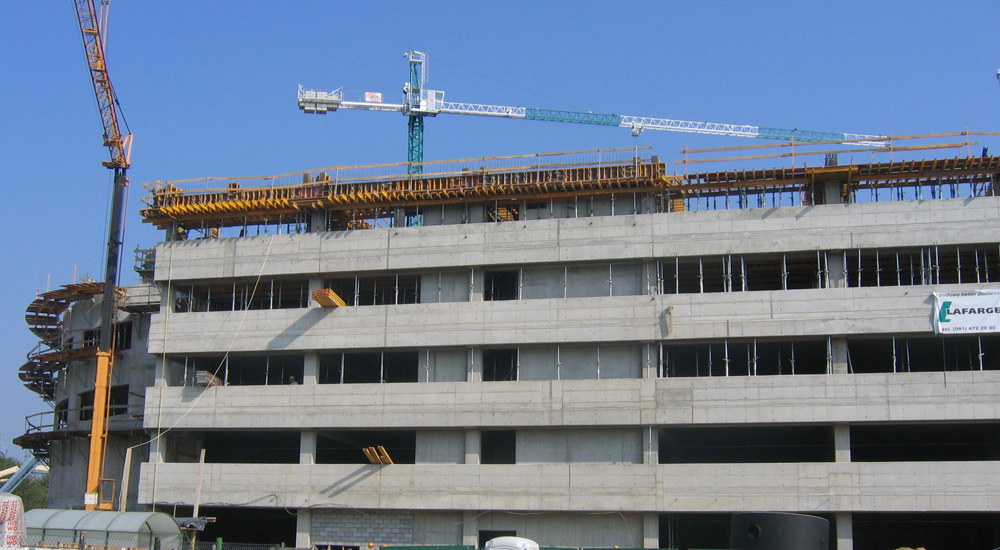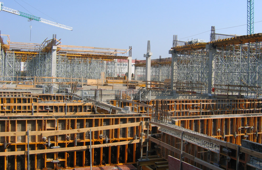 Le fondazioni, suddivise in 9 lotti, sono state costruite utilizzando la cassaforma NEVI che ha consentito la movimentazione senza l'uso della gru già dalle fasi iniziali. È stata impiegata anche come cassaforma per le travi e le strutture verticali in quota e per i pilastri da 70 x 70cm. Anche le pareti interne sono state costruite con la cassaforma NEVI con due configurazioni da 3,30m e due da 2,70m. Per gli accessi ai livelli in sicurezza è stato utilizzato il sistema BRIO.