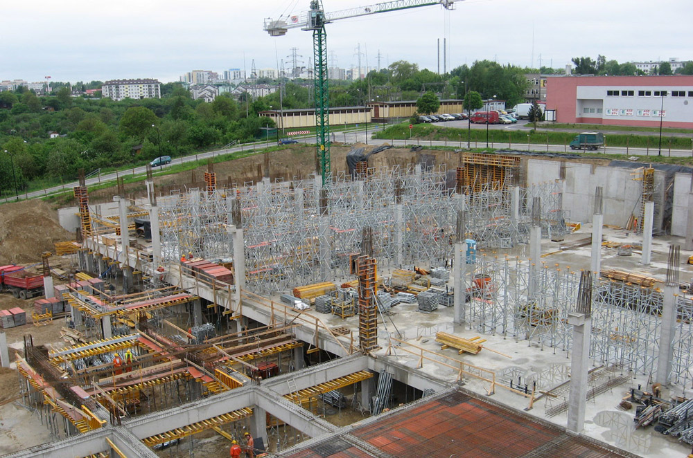 I solai e le travi sospese sono stati realizzati con la cassaforma ENKOFLEX sostenuta con il sistema di puntellamento T-60 e puntelli ALUPROP. È stata, poi, aggiunta un'altra fila di torri di sostegno lungo le travi sospese creando così una piattaforma di lavoro spaziosa e sicura.