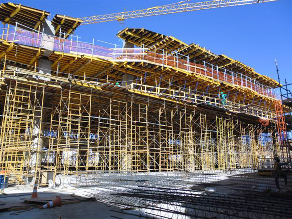 Per risultati ottimali sono state utilizzate combinazioni di sistemi di casseforme: la cassaforma modulare COMAIN per pareti e pile e la cassaforma RAPID per solai pieni e grandi campate. L'accesso ai diversi piani è stato agevolato dall'utilizzo della scala BRIO.