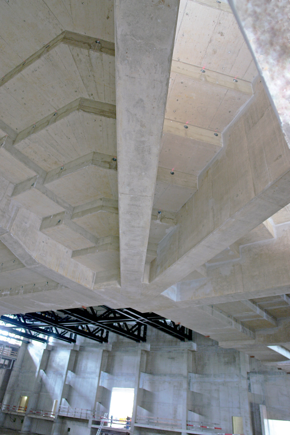 Un edificio di questa imponenza ha richiesto il prodotto più adeguato ad ogni soluzione: casseforme ORMA per la posa in opera delle pareti, tavoli VR per i solai e strutture con torri di carico T-60 da utilizzare come sistema di distribuzione dei carichi. Grazie a questi sistemi è stato possibile ottenere la prevista finitura del calcestruzzo a vista e l'adattamento alle diverse geometrie.