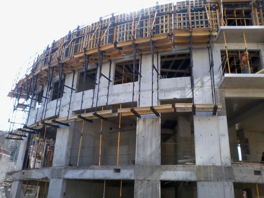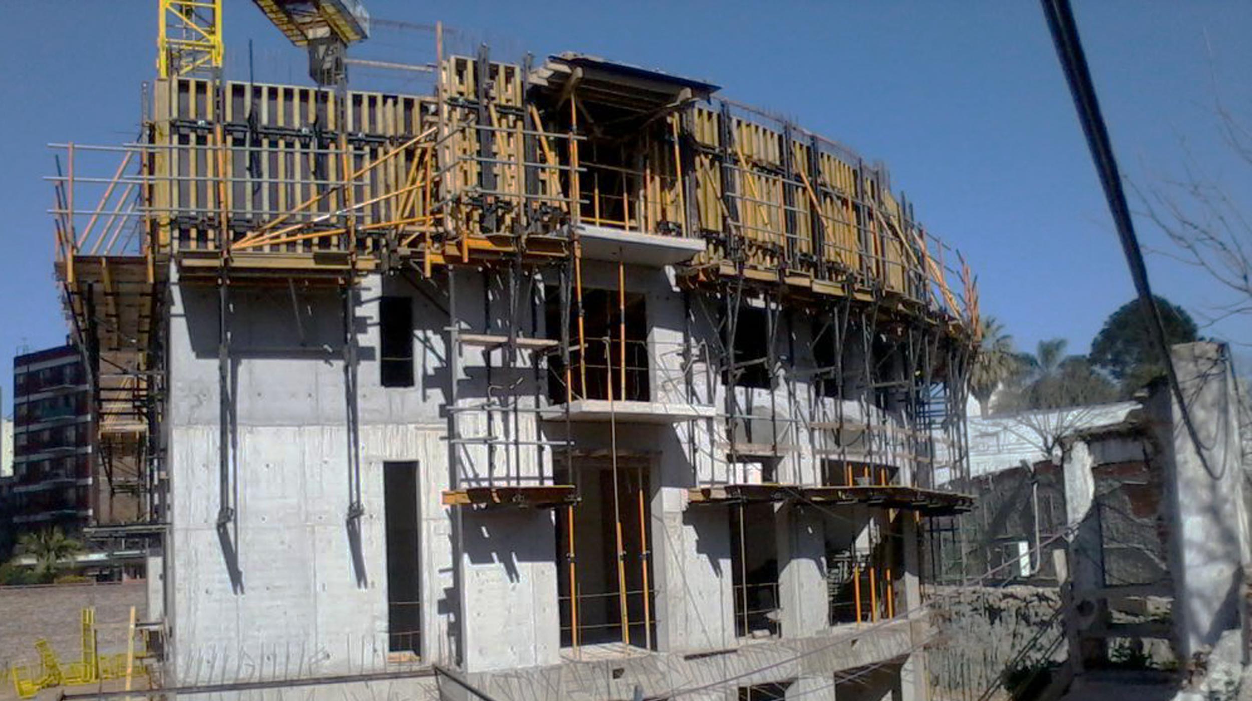 - ENKOFORM V-100. I pannelli diritti della cassaforma sono stati assemblati da operai istruiti dal personale tecnico di ULMA Argentina. I pannelli curvi sono stati montati da ULMA presso il proprio magazzino argentino e poi uniti in cantiere. Per ottenere la curvatura precisa è stato necessario assemblare i pannelli diritti ENKOFORM posandovi sopra profili curvi necessari per il fissaggio di pannelli in multistrato fenolico spessi 12mm (1,22 x 2,44m) forniti dal cliente.