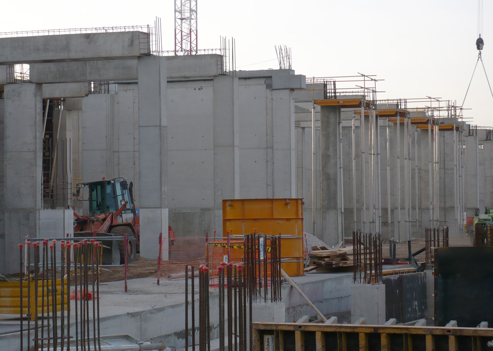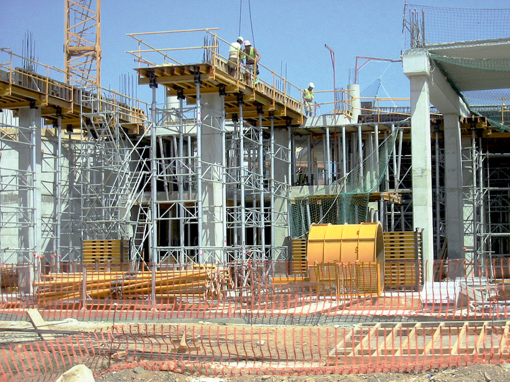 La realizzazione di questo progetto ha comportato una vera e propria sfida costruttiva a causa dei ritmi di lavoro elevati, necessari per ultimare la costruzione entro e non oltre le scadenze specificate, senza considerare la necessità di garantire costantemente finiture di alta qualità. Per questo motivo si è deciso di utilizzare sistemi vantaggiosi, efficienti e facili da movimentare quali, ad esempio, la cassaforma in alluminio CC-4 per realizzare i solai e il sistema modulare ORMA per la costruzione delle pareti delle gradinate.