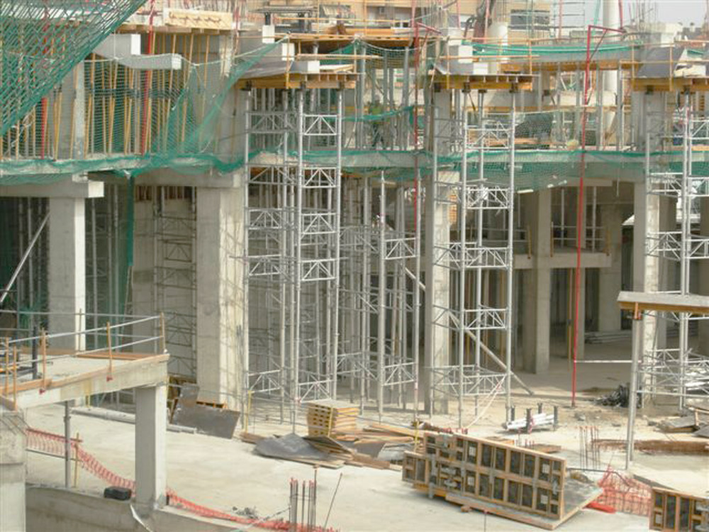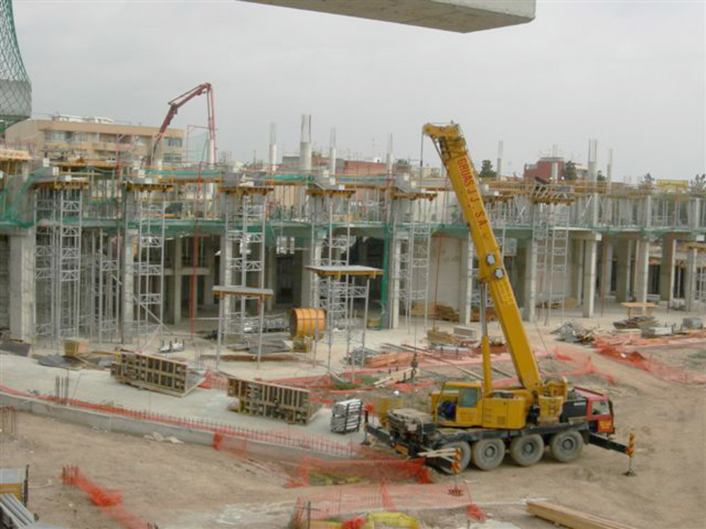 I solai in calcestruzzo sono stati gettati in loco con la cassaforma CC-4. Per il puntellamento sono stati impiegati puntelli in alluminio ALUPROP grazie ai quali sono state create torri facili da movimentare. In questo modo è stato facile raggiungere le altezze previste per il puntellamento delle parti superiori delle gradinate.