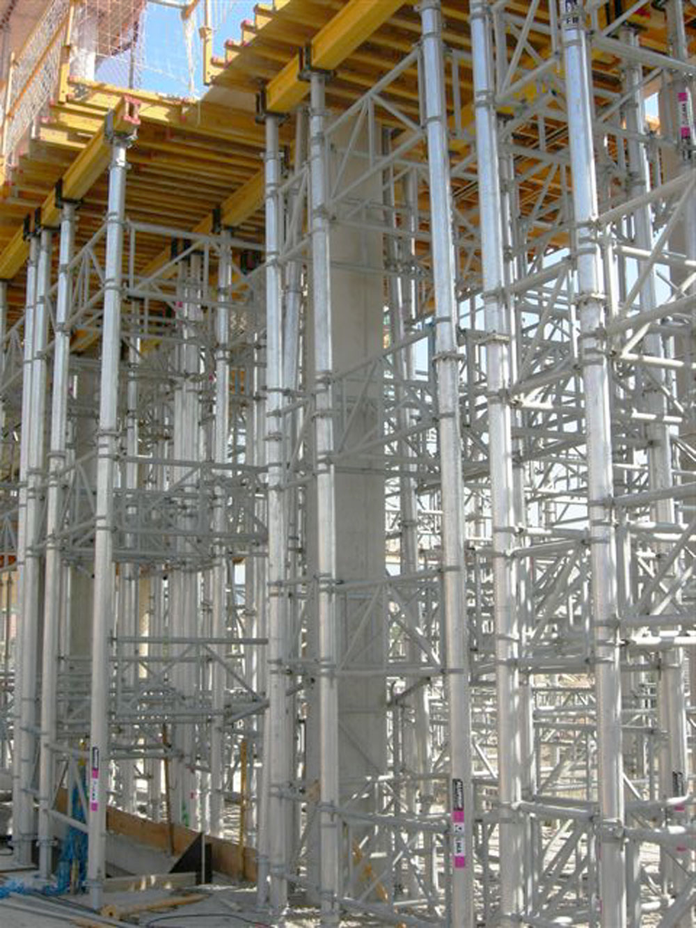 Il sistema CC-4 ha assicurato i vantaggi tipici dell'alluminio, in particolare la leggerezza. Questo prodotto ha consentito il pre-assemblaggio della griglia e la successiva posa in opera della piattaforma di lavoro. C'è solo un elemento che resta, ovvero la testa di caduta, il che ha consentito di velocizzare i tempi di casseratura e disarmo, oltre ad agevolare il recupero del materiale senza il rischio di caduta di pezzi a terra. L'uso di questo sistema insieme ad altri, quali, ad esempio, le tavole VR ed ENKOFLEX (per le scale), ha garantito la redditività del progetto rendendo possibile la rotazione delle attrezzature e la conseguente riduzione dei materiali necessari.