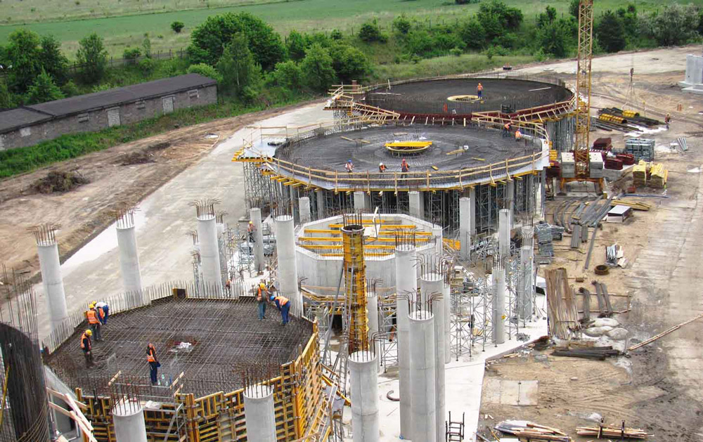 Per la raccolta della biomassa sono stati eretti otto silos con le seguenti capacità: 8.000, 6.000 e 1.000m3. Il raggio interno delle pareti dei serbatoi spesse 30cm varia tra 9 e 22m, mentre l'altezza varia tra 13 e 19m. Il tetto in acciaio raggiunge i 35m.