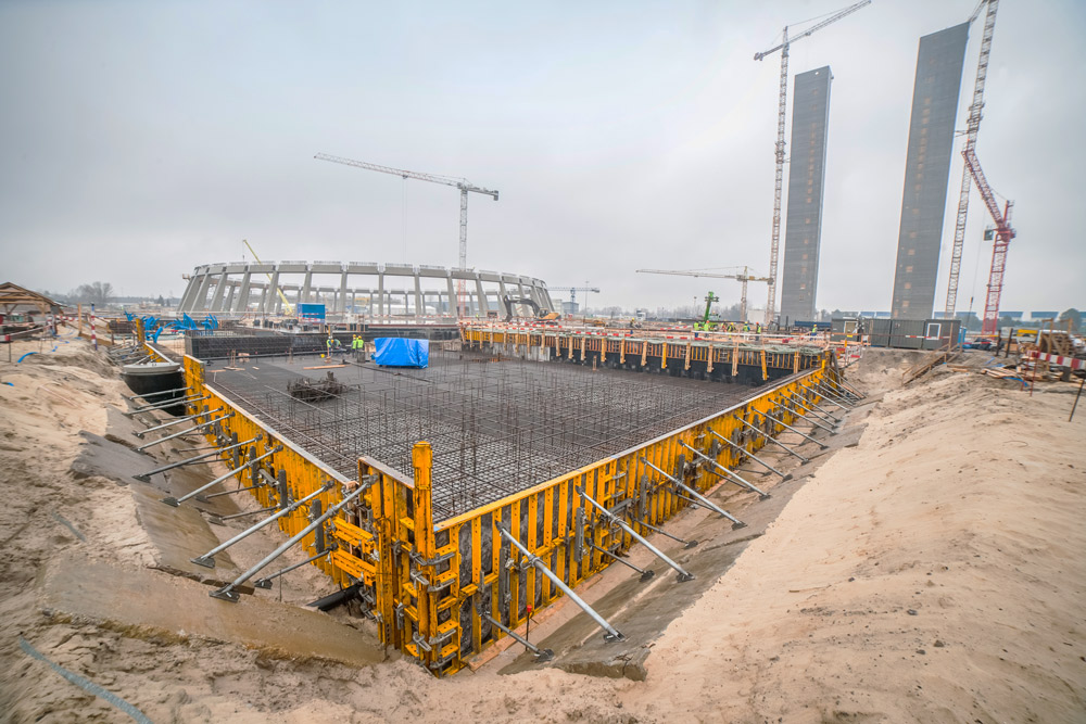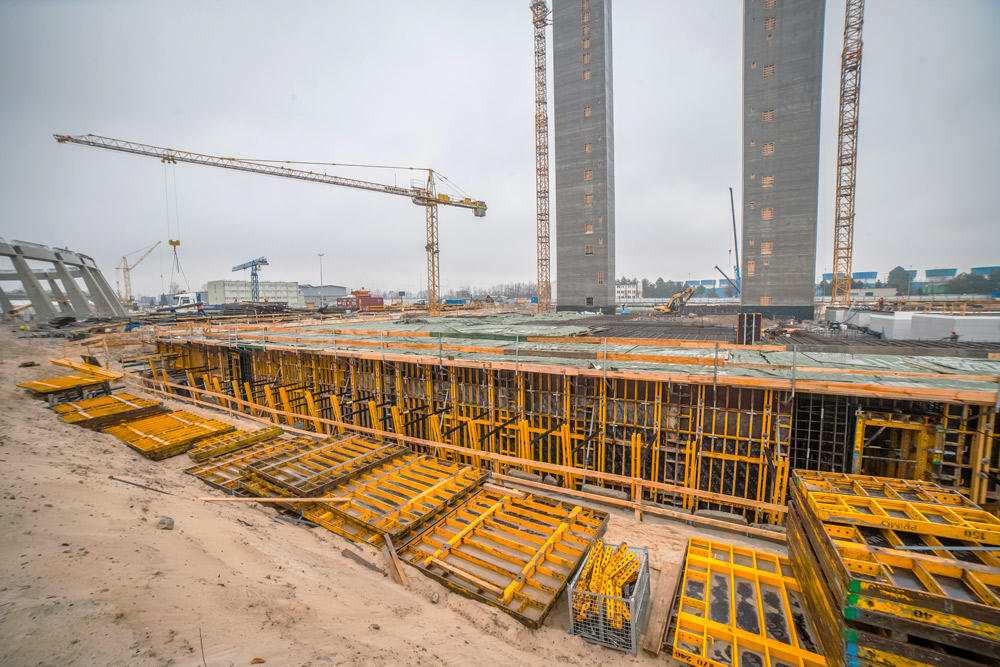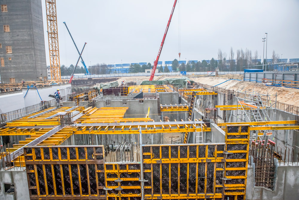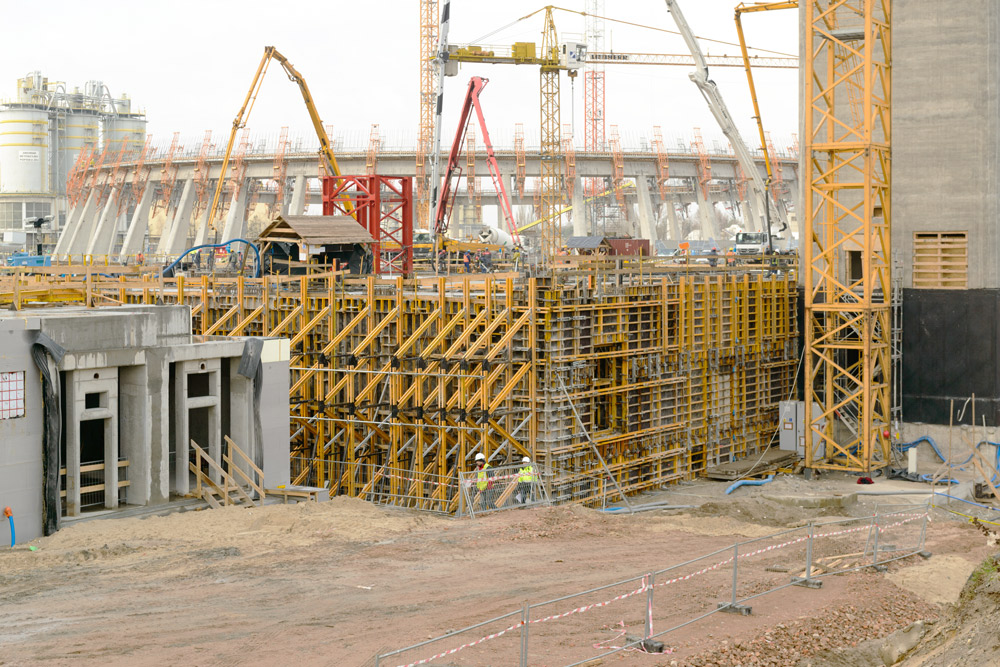 La sala caldaie, con una superficie di 87,1 x 63,35m e un'altezza variabile tra 3 e 6m, ha richiesto il getto di 20.000m3 di calcestruzzo in un'unica fase. Le pareti piene necessarie nelle fondazioni sono state costruite con travi monofaccia SMK assemblate con travere MK in modo da renderle compatibili con qualsiasi tipologia di cassaforma per pareti, nello specifico la cassaforma modulare ORMA. Questa fase ha anche previsto la costruzione di canalizzazioni alte 3,3m realizzate con lo stesso sistema di casseforme per pareti monofaccia.
