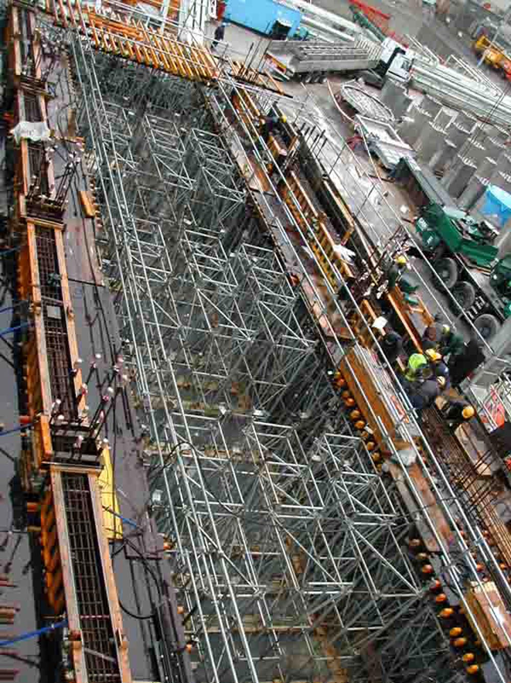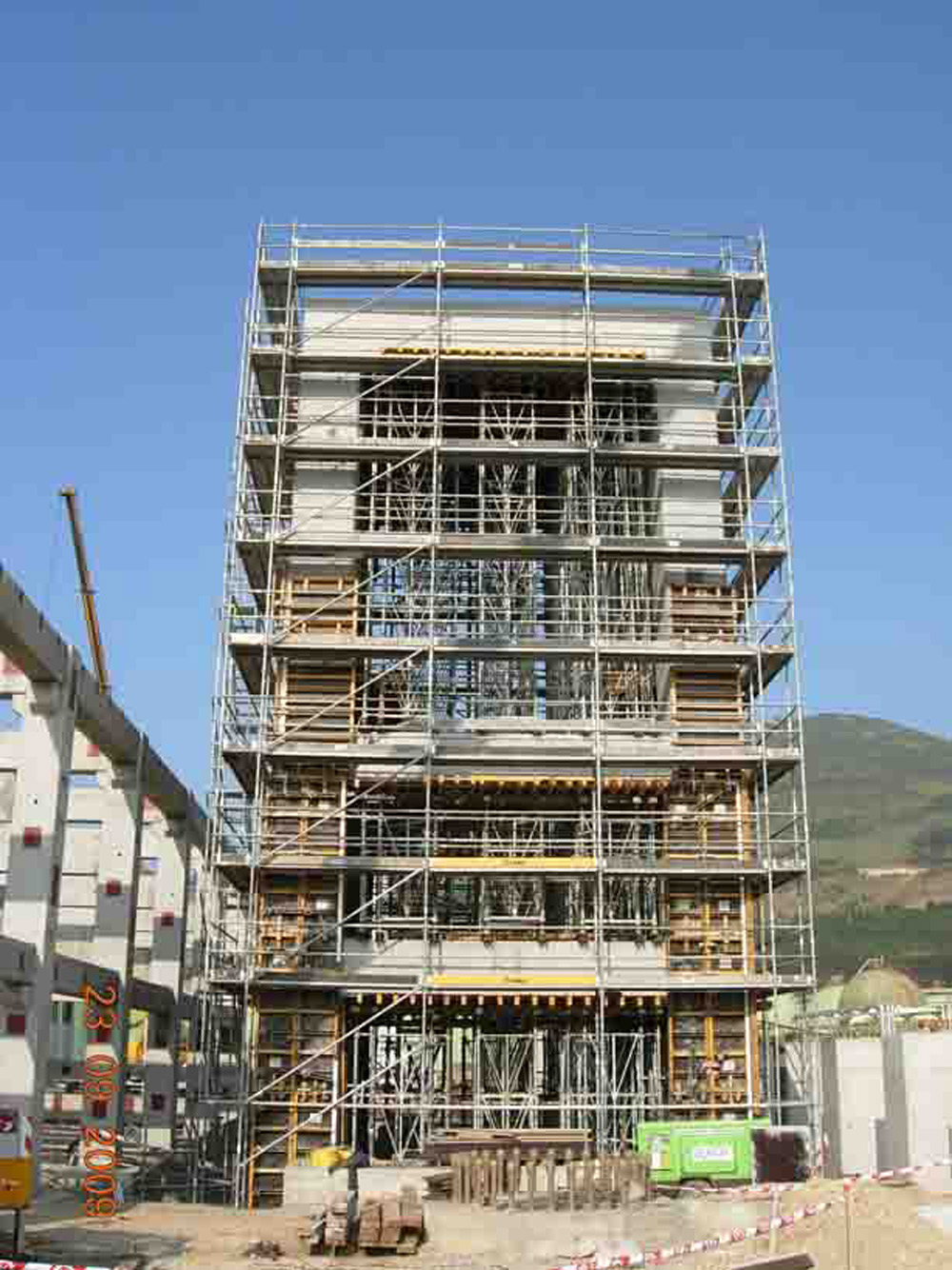 L'uso contemporaneo di ponteggi e casseforme ha mostrato la propria efficacia in quanto ha agevolato le attività degli operai garantendo elevata redditività. Come cassaforma per diverse strutture è stata utilizzata la gamma completa dei sistemi modulari ORMA. Questo sistema, progettato con pannelli robusti in grado di sostenere elevate pressioni di getto del calcestruzzo, ha fornito gli elementi di sicurezza necessari in ogni momento.