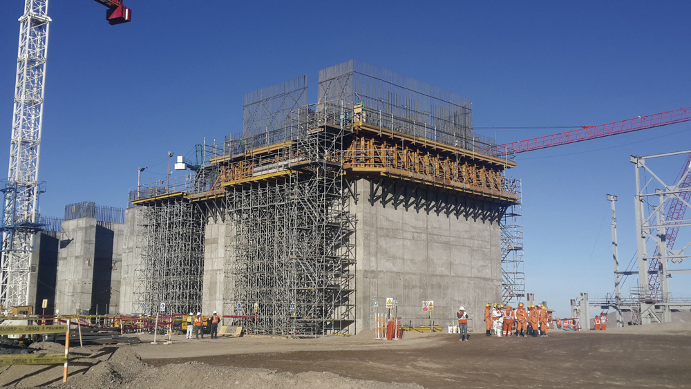 Per la costruzione del solaio in calcestruzzo armato (2,50m di spessore) del nuovo mulino è stata impiegata la cassaforma modulare ORMA. Per il calcolo della struttura è stato necessario considerare tra i carichi orizzontali le forze esercitate dai venti, fattore che ha comportato un aumento del peso della struttura stessa. ULMA ha installato sistemi di puntellazione T-60 con elevata capacità portante composti da due torri rinforzate con telai e controventature diagonali in grado di reggere carichi pesanti in quota. Le torri sono state controventate con tubi orizzontali a 2m di altezza. La capacità portante di ciascuna torre aumentava così di oltre 1t, consentendo il giusto sostegno del solaio. Il preassemblaggio a terra e il sollevamento per mezzo di gru hanno assicurato la massima agevolezza di movimentazione.