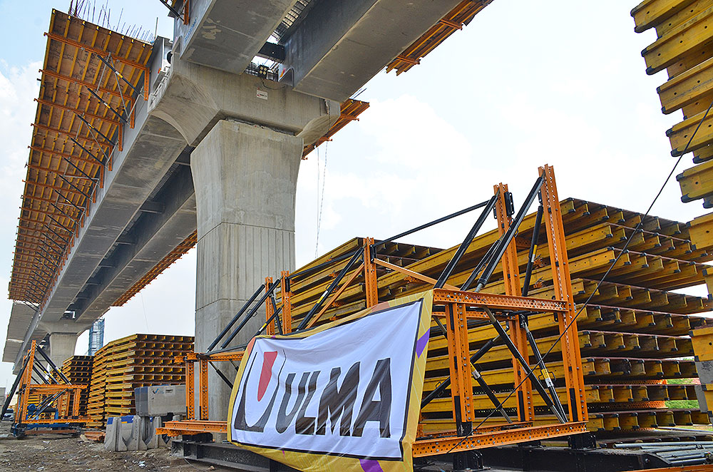ULMA ha fornito il cassero ENKOFORM VMK per la costruzione dei fusti pila e dei pulvini. Poiché il sistema è caratterizzato da elevata versatilità, la sua adozione ha rappresentato la soluzione ideale per la realizzazione del pulvino avente una forma curva e inclinata. Per i getti di ripresa lungo il fusto pila è stato impiegato il sistema rampante BMK, che agevola il sistema di costruzione in elevazione.