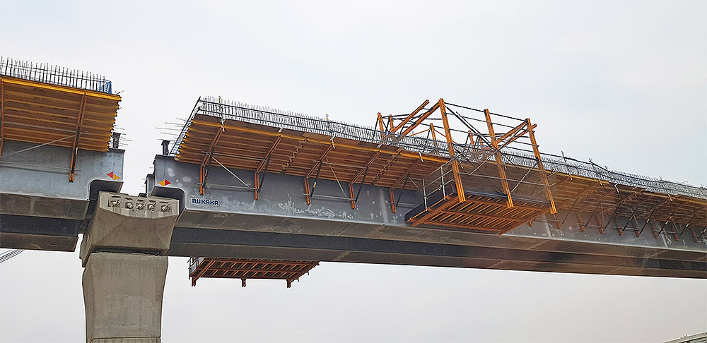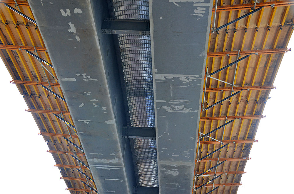 ULMA era anche responsabile della fornitura di sistemi MK per la realizzazione delle solette di completamento dell’impalcato. La sfida principale di questo progetto è l'elevato volume di veicoli che passano quotidianamente, che richiede soluzioni tecniche speciali per garantire il traffico durante la costruzione.