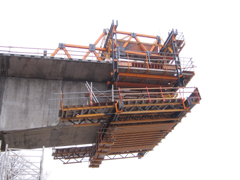 Le pile alte da 15 a 18m sono state realizzate con casseforme ORMA su Mensole Rampanti CR-250. Ciascun set di casseforme provvisto di grandi piattaforme di lavoro, viene poi trasferito alla fase successiva mediante sollevamento con un'unica gru.