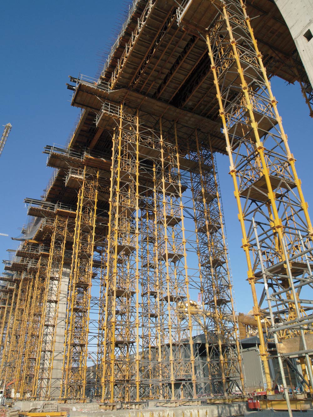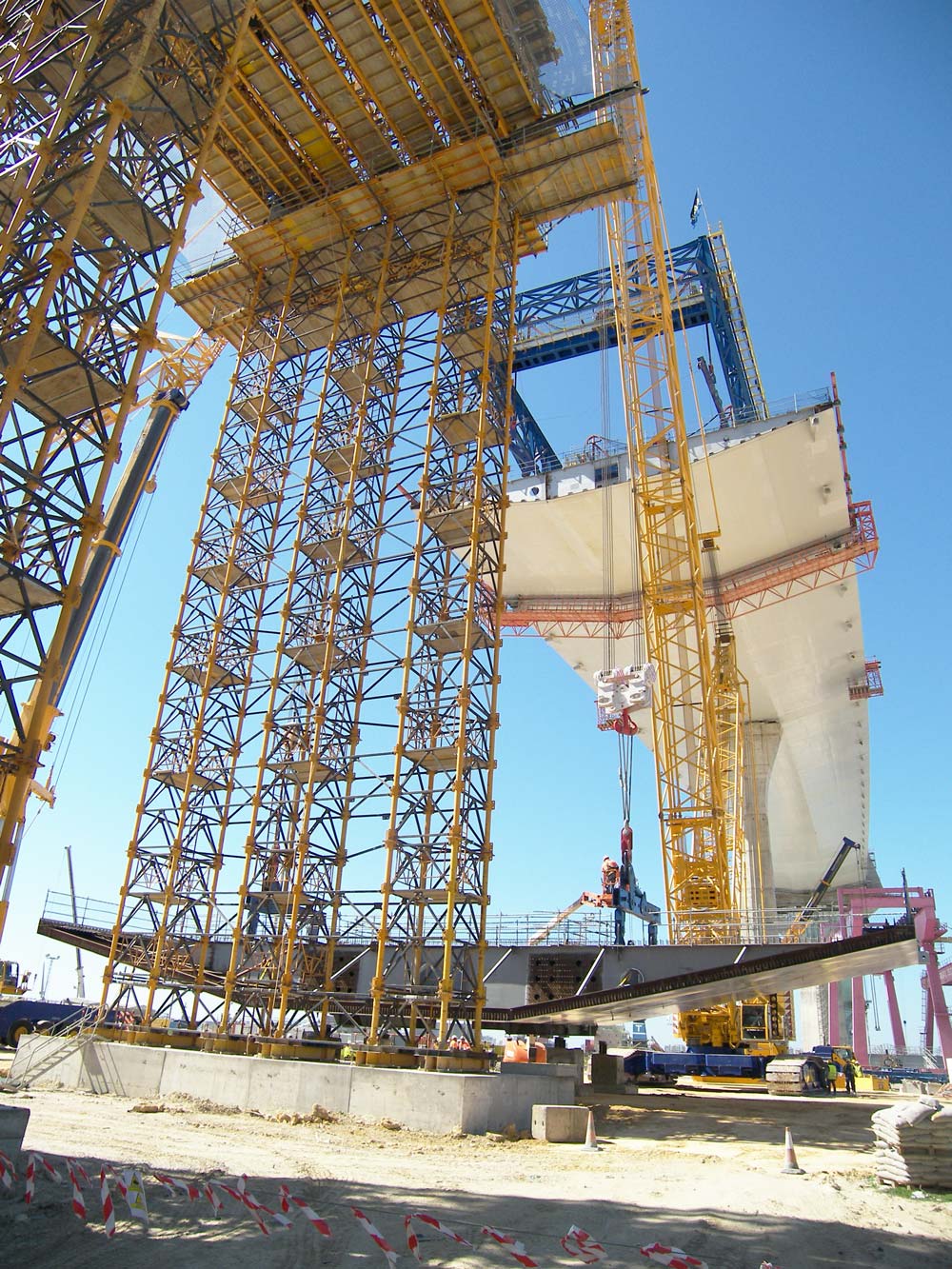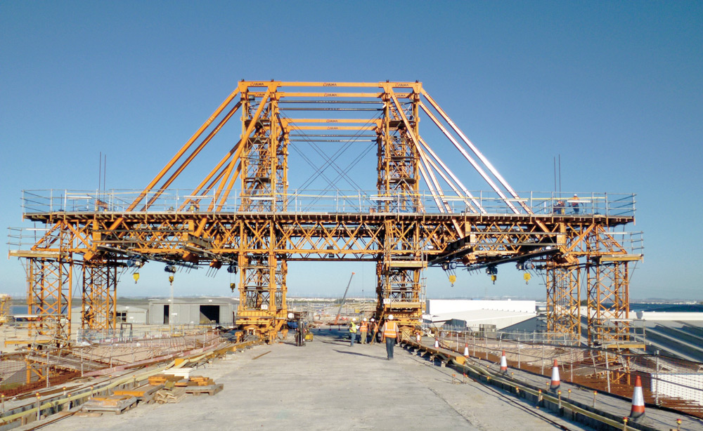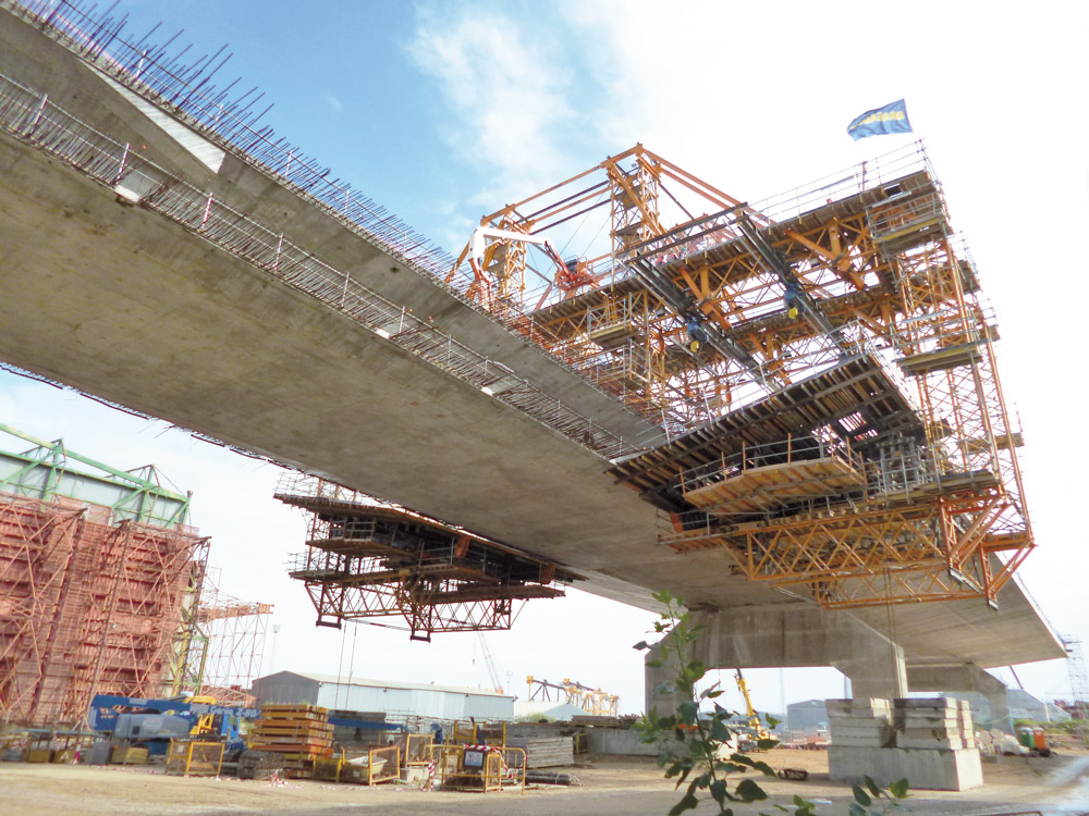 ULMA è stata coinvolta nella costruzione di diverse sezioni del ponte per un totale di 1.079m. La sezione dell’impalcato di grandi dimensioni ha una geometria interna complessa e una forma trapezoidale all'esterno con i lati paralleli di 10 e 30m di lunghezza e un'altezza variabile tra 2 e 3m.