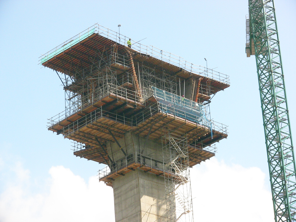Le pile alte fino a 70m sono state costruite a livelli con Mensole Rampanti CR-250 e la cassaforma verticale ENKOFORM V-100.