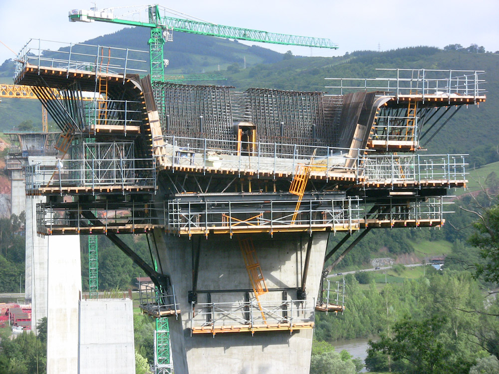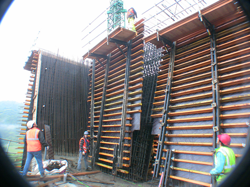 La testa-pile è stata realizzata con la cassaforma ENKOFORM H-120 su mensole di carico G. Alcune pareti laterali alte 9m sono state gettate in due diverse fasi.
