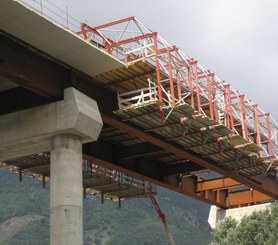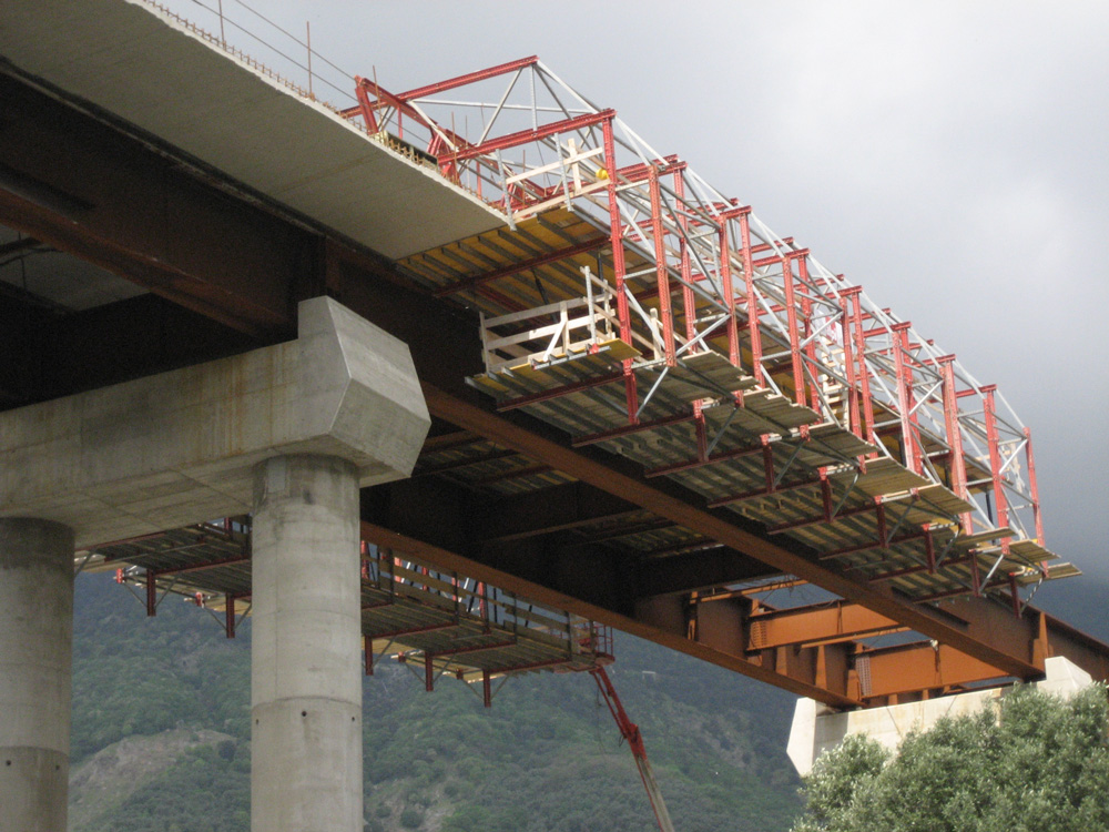 Il carro lungo 24m ha agevolato i cicli di getto settimanali da 22m. La struttura del carro per cordolo consiste in otto travi trasversali che sorreggono la cassaforma per le ali. Comprende anche piattaforme di lavoro e due travi a sostegno della struttura che si sposta su guide.