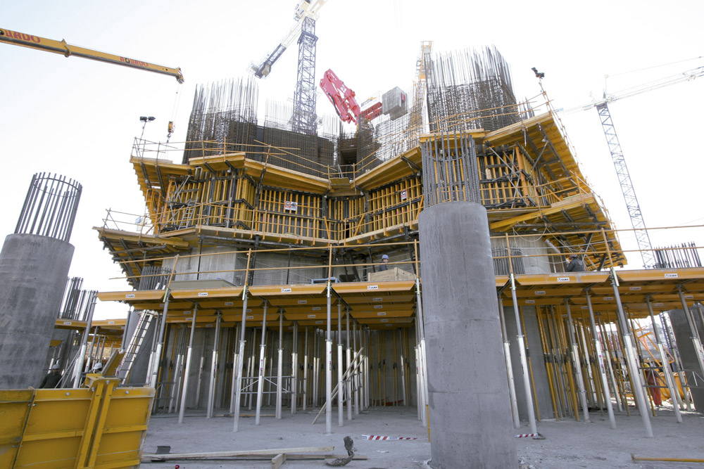 I sei piani sotterranei e i primi sei piani dell'edificio sono stai realizzati con casseforme orizzontali in alluminio CC-4 insieme a puntelli ALUPROP che hanno consentito di ottenere elevate prestazioni edili. Uno dei maggiori vantaggi offerti dal sistema CC-4, rispetto ad altri prodotti sul mercato, è la possibilità di assemblare il grigliato prima della messa in posa i pannelli.