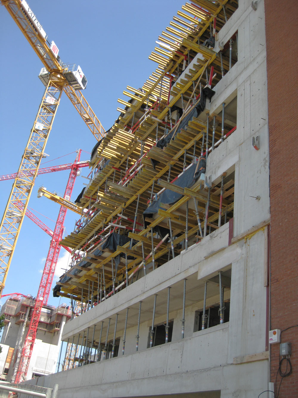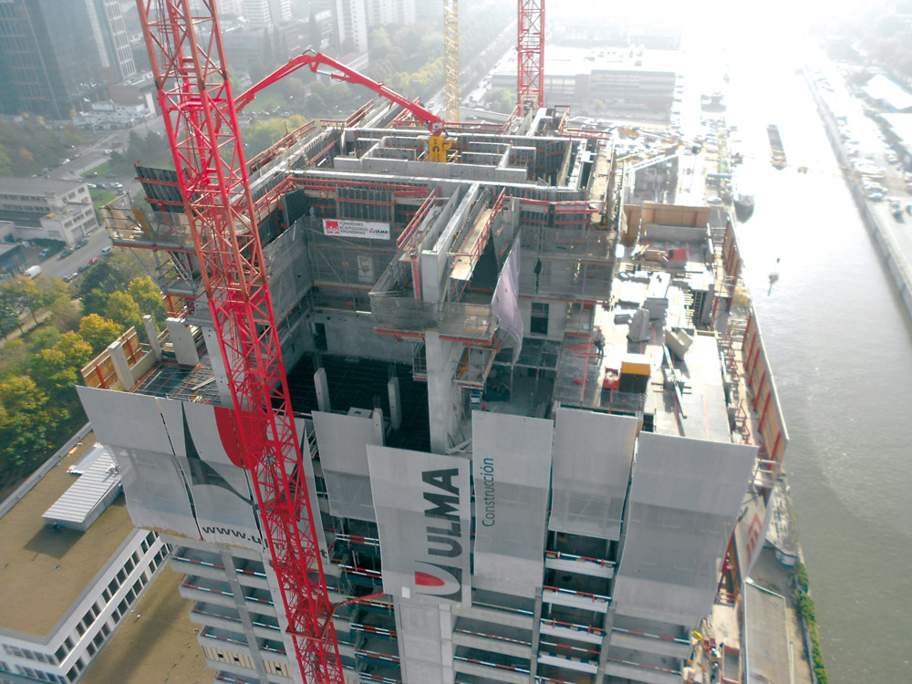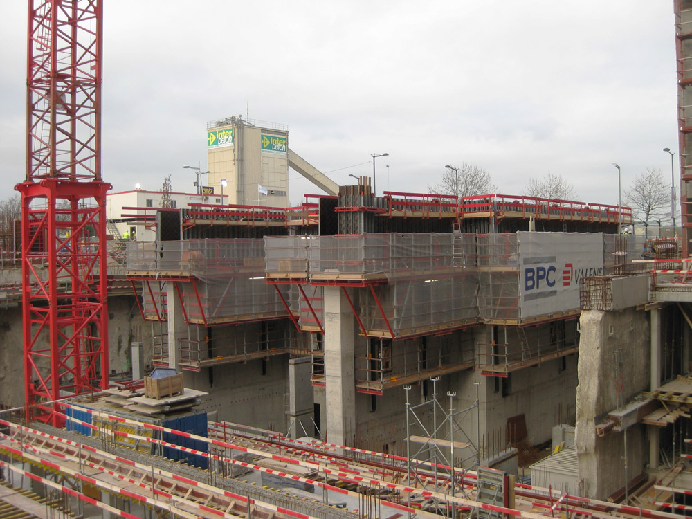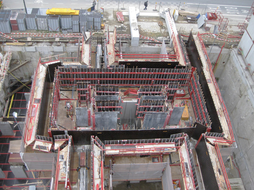 La parte centrale dell'edificio è stata costruita con l'aiuto del Sistema Autorampante ATR e piattaforme strette per i vani interni con casseforme verticali basate su travi per garantire la versatilità necessaria.