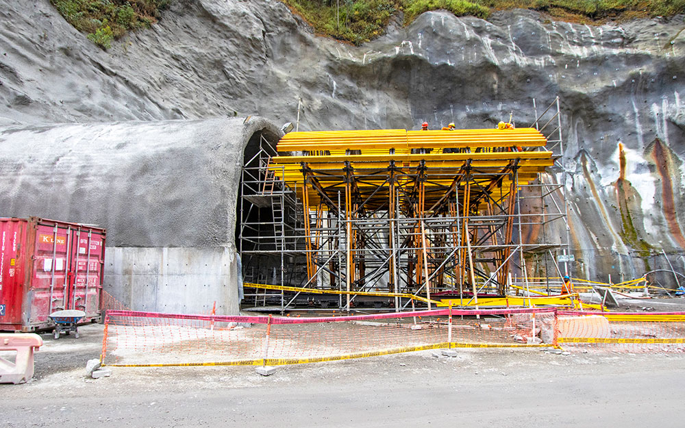 GALLERIA PRINCIPALE: lunga 774 m, con sezione variabile e una pendenza longitudinale del 3,4%. Per questo tratto sono stati progettati 3 carri MK per gallerie naturali sotterranee di 8 m di lunghezza e getto, con dimensioni variabili di larghezza da 12,9 a 13,5 m e altezza della volta da 8,4 a 10,15 m. Essendoci un cambiamento nella sezione tipica, con un aumento graduale di 60 cm, due dei carri sono stati adattati a ciascuna delle transizioni. Il ciclo di getto era di 4 giorni. Con il ponteggio BRIO a forma di carro sono stati eseguiti i lavori di finitura, adattandosi alle diverse geometrie della galleria.