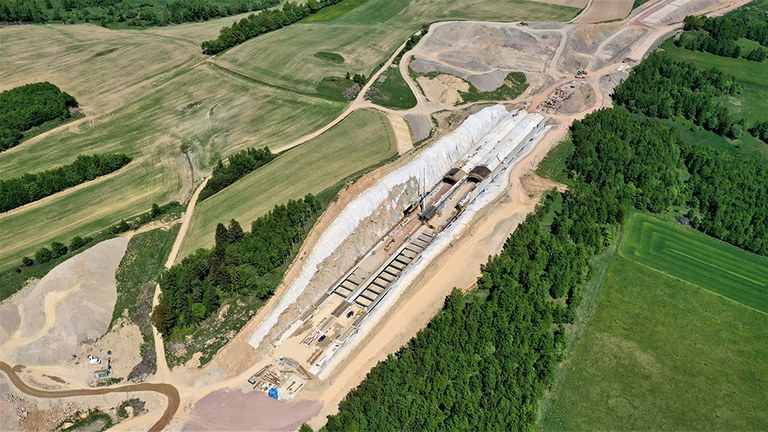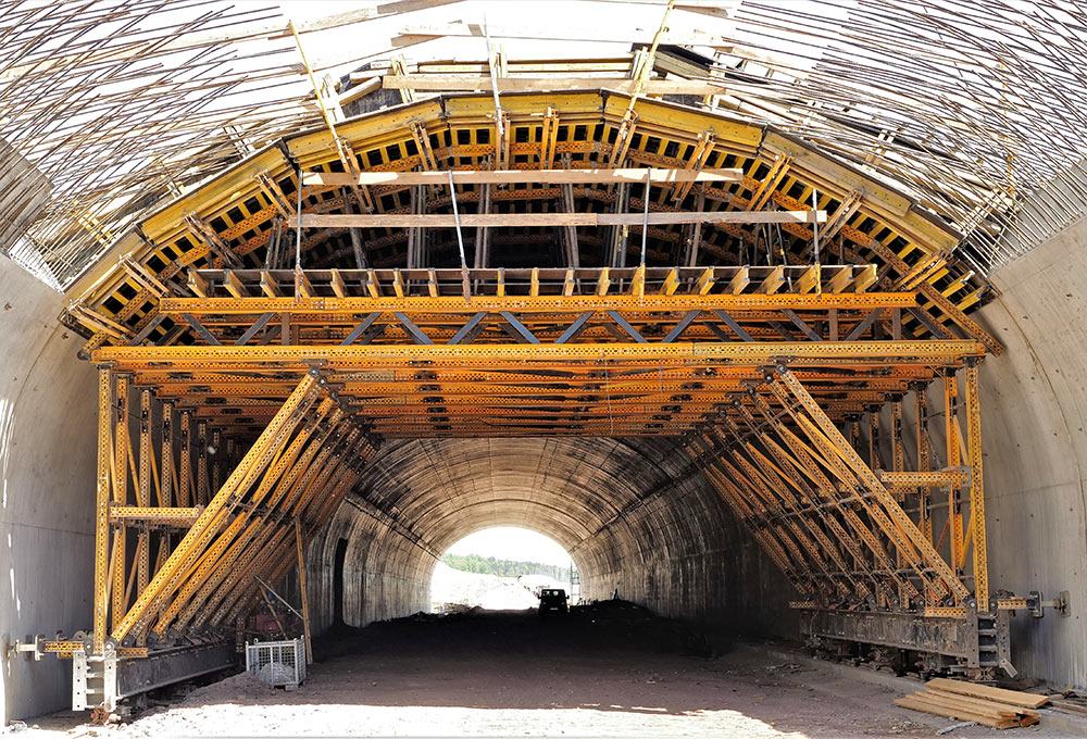 La volta è stata realizzata con il carro MK per gallerie a cielo aperto. Il suo design ha tenuto conto della capacità di adattarsi alla geometria della galleria e della possibilità di traslazione sulle fondamenta. In questo modo, sono stati evitati i costi aggiuntivi associati all'implementazione di un sistema di fondazioni aggiuntivo per le corsie stradali. Inoltre, per evitare l'uso di macchinari in loco, parte del carro MK è stato pre-assemblato presso gli stabilimenti ULMA.