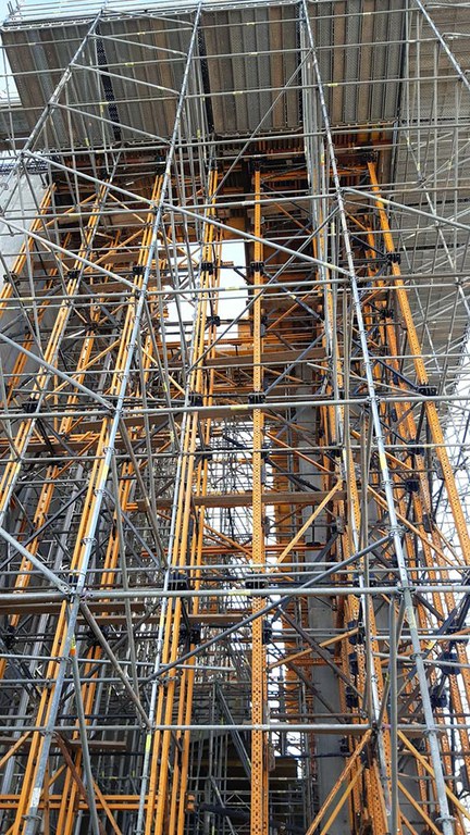 In Italia, nel nuovo Ospedale Galeazzi a Milano, è stato utilizzato il ponteggio BRIO, di grande flessibilità e stabilità, che può essere adattato in modo ottimale a tutti i tipi di geometrie di facciata in modo rapido e completamente sicuro.