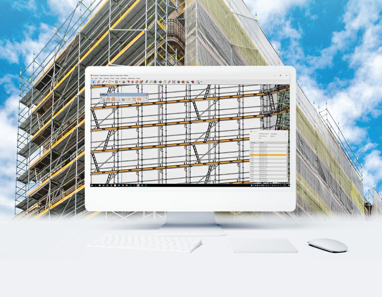 Scaffmax®, un componente aggiuntivo per SketchUp® Pro, è un altro strumento che mettiamo a disposizione del cliente per completare il nostro toolkit digitale per i ponteggi. Scaffmax® permette di scegliere i criteri di applicazione più pertinenti per il cliente e nel giro di qualche secondo consente di inserire i ponteggi BRIO e DORPA su una struttura tridimensionale precedentemente creata in SketchUp® Pro. Il software non solo rende possibile la creazione di elenchi dei materiali e progetti con un semplice clic, ma è anche dotato di punti di inserimento intelligenti per poter apportare modifiche manuali.